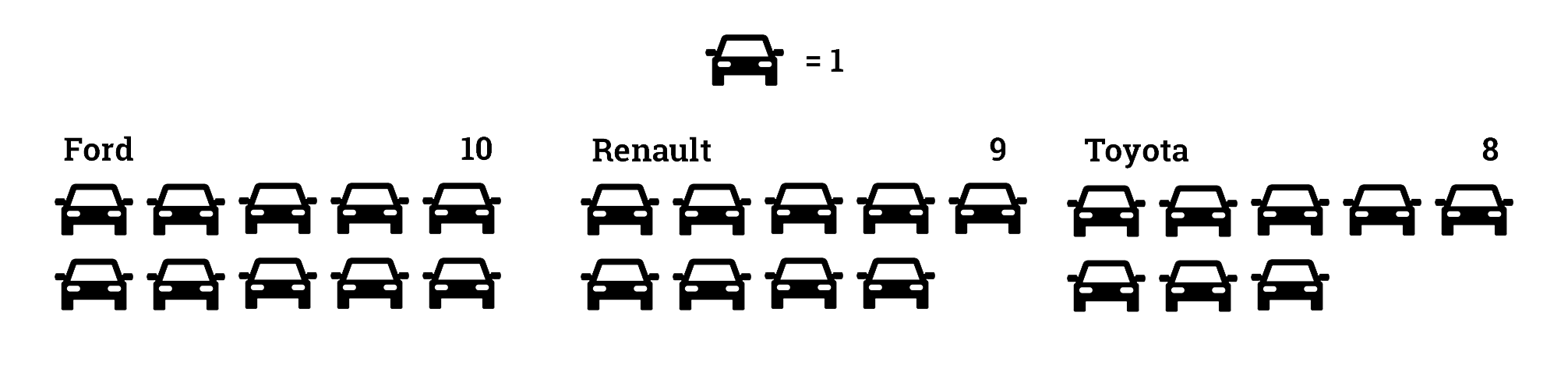 No deformes los pictogramas para transformarlos en barras/columnas. El tamaño debe ser proporcional en cuanto al área.