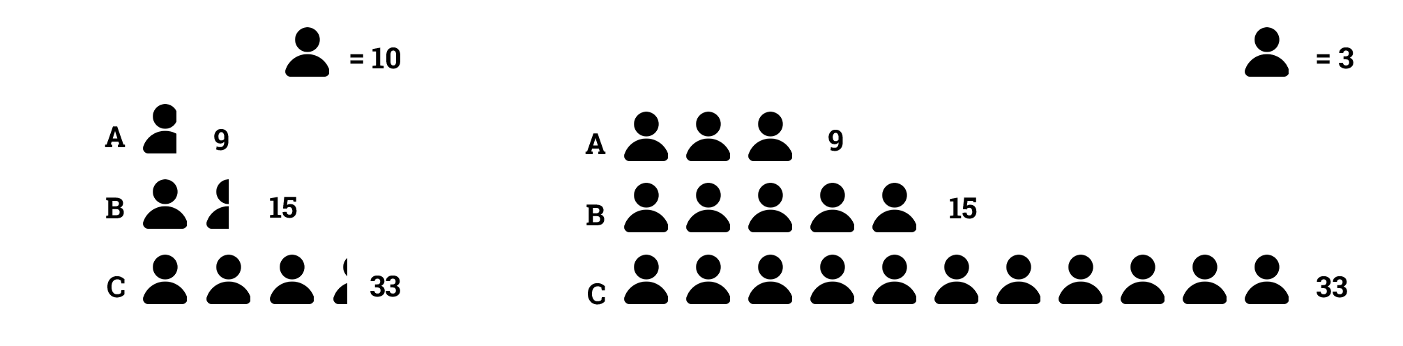 Asigna un valor al icono y divide los datos en unidades que sean múltiplo de ese valor.